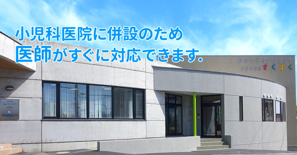 病児保育室「すくすく」は、秋山こどもクリニックに併設されたオホーツク管内初の医療併設型病児保育施設です。